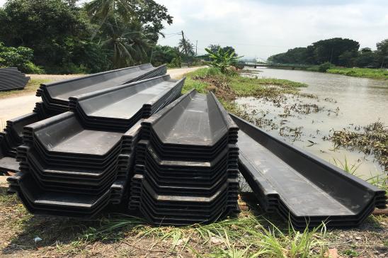 Applied with Coal Tar Epoxy Paint with 150micron both surface & full length Sheet pile wall tie-back with RC pile